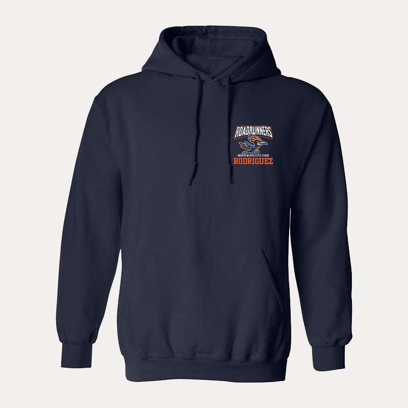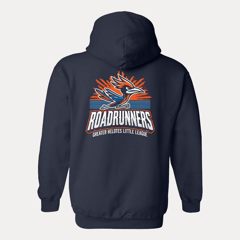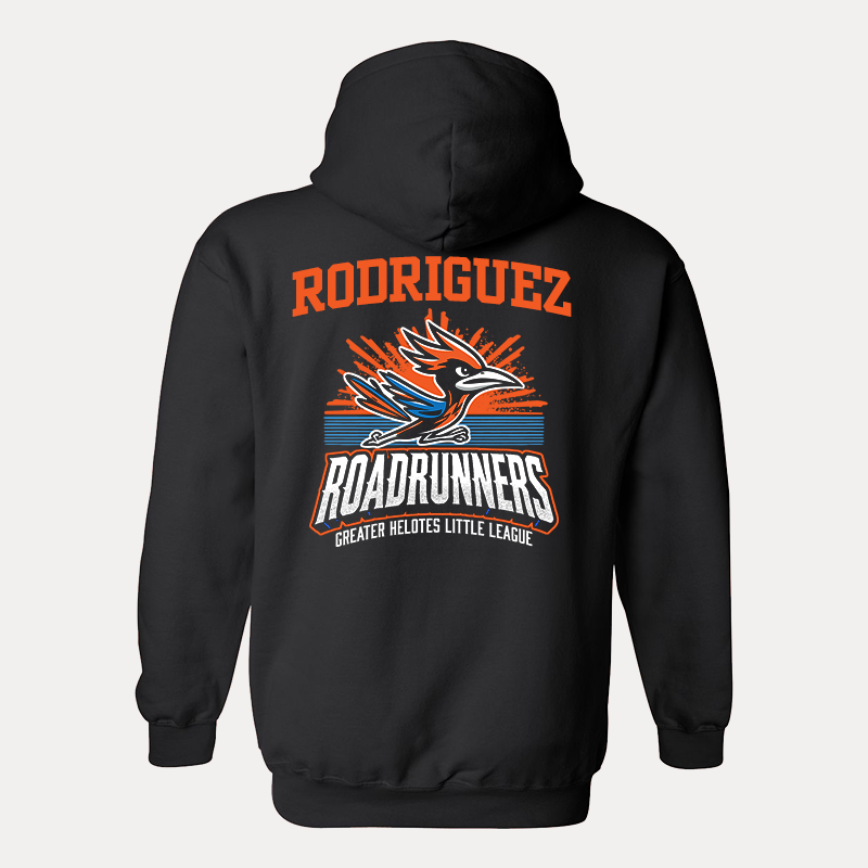 Stay warm while showing your support for the Road Runners Girls Little League with this customizable sweatshirt! Featuring the official team logo and the option to add your name on the front or back, this high-quality hoodie is perfect for parents, players, and fans alike.
