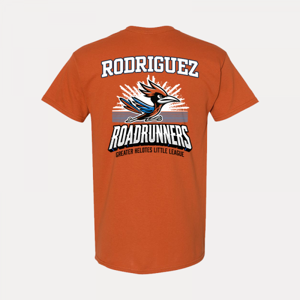 Support the Roadrunners Girls Little League in comfort and style with the Roadrunners Custom Team T-Shirt! Order yours today and show your team pride! ⚾💙🔥