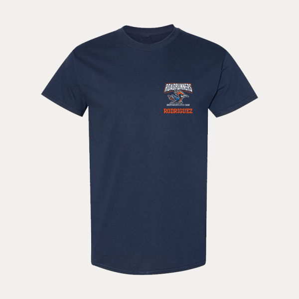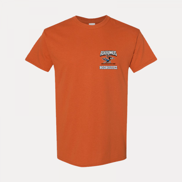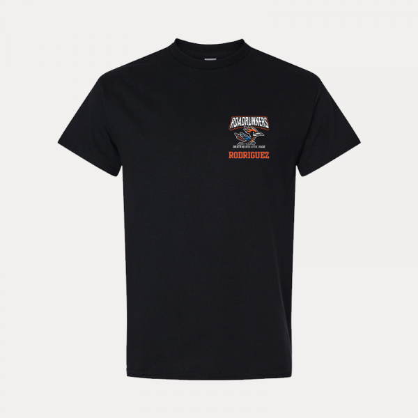 Show your Roadrunners spirit in style with this customizable team t-shirt, featuring the official team logo and the option to add your name on the front or back. Made from 100% U.S. cotton, this shirt is designed for ultimate comfort, durability, and a smooth print surface—perfect for game days or everyday wear!