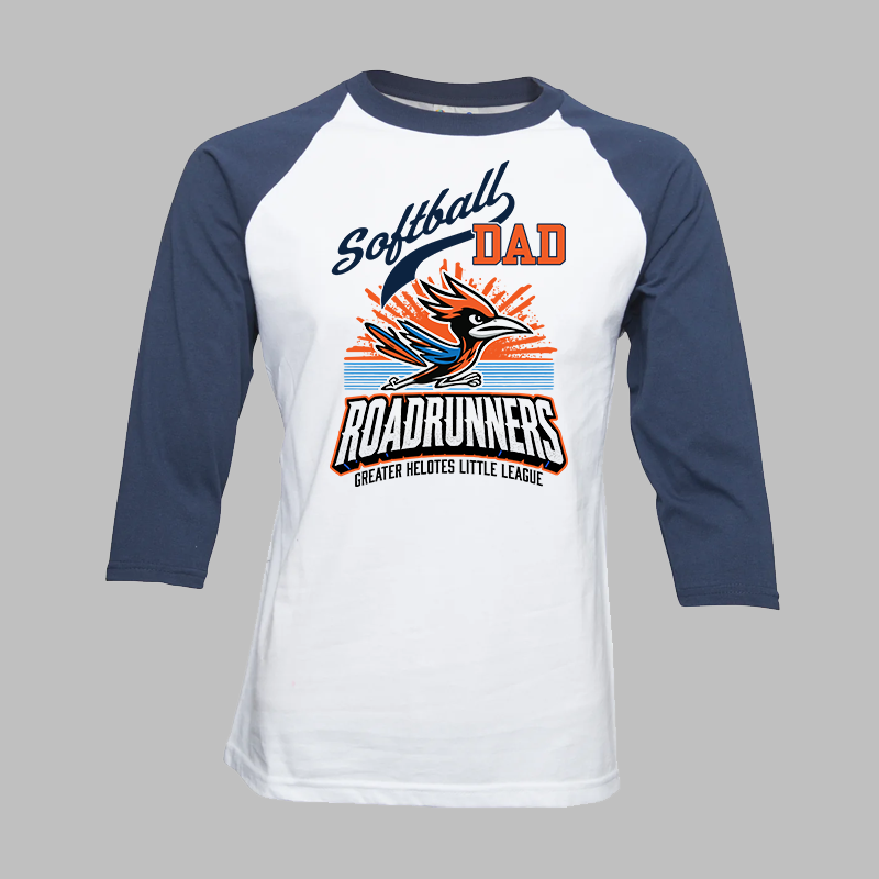 • Design: High-quality print with a vibrant Roadrunners logo and “Softball Dad” script