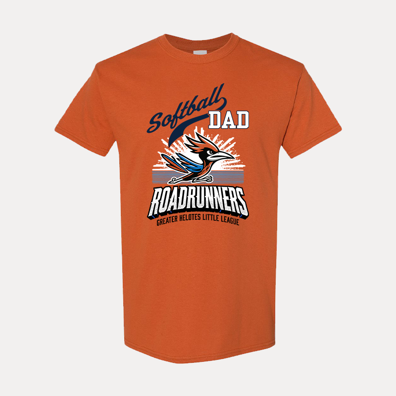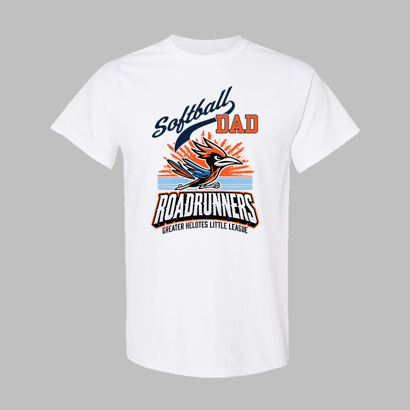Rep your Softball Dad status with this stylish and comfortable Roadrunners t-shirt! Whether you’re cheering from the stands, coaching from the sidelines, or wearing it around town, this 100% cotton tee is designed for ultimate comfort, breathability, and durability. Featuring a bold “Softball Dad” design alongside the official team logo, this shirt is perfect for game days and everyday wear.