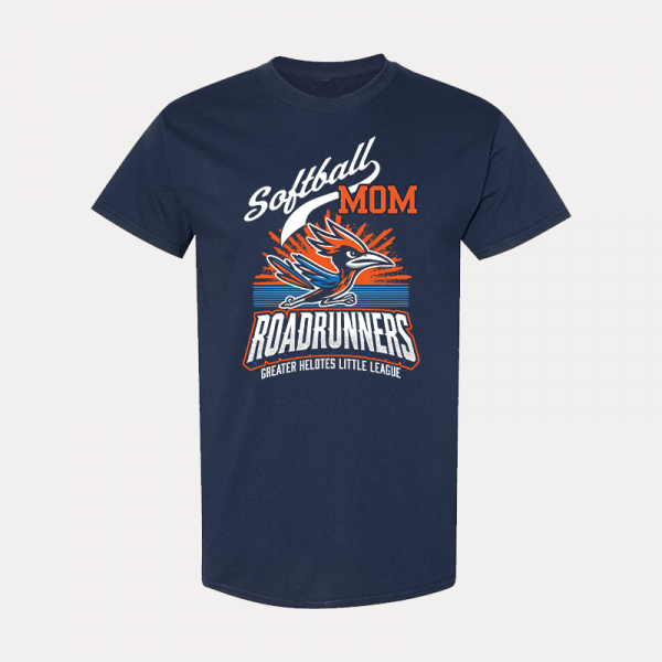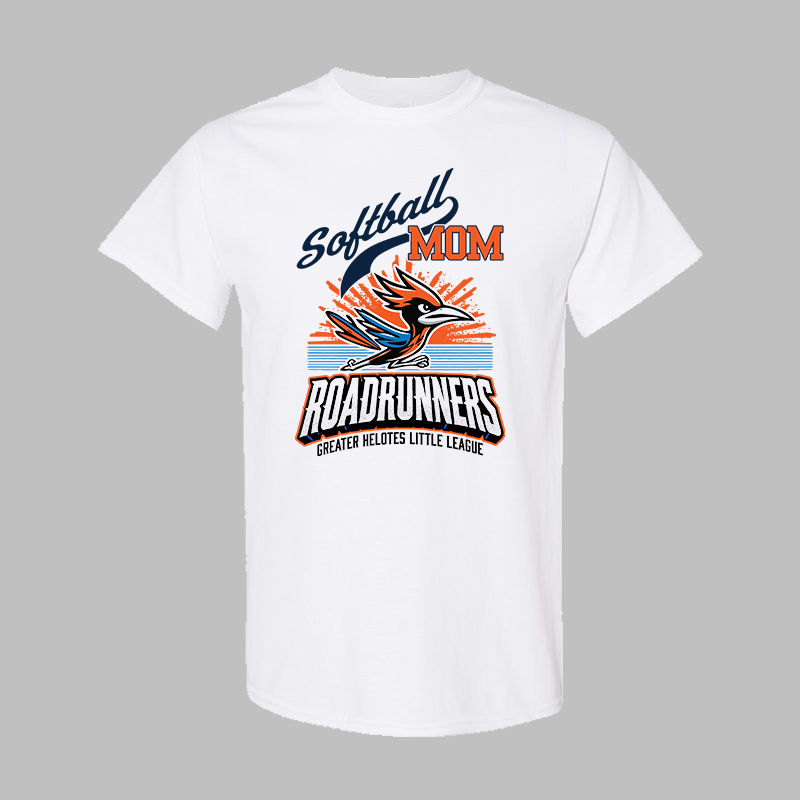 Stay comfortable while cheering for your player—order your Softball Mom Roadrunners T-Shirt today! ⚾💙🔥