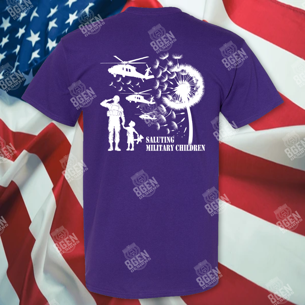 A shirt that recognizes the strength, resilience, and sacrifice of military-connected children. It reflects the challenges they face—frequent moves, time apart from loved ones, and growing up in a lifestyle shaped by service.