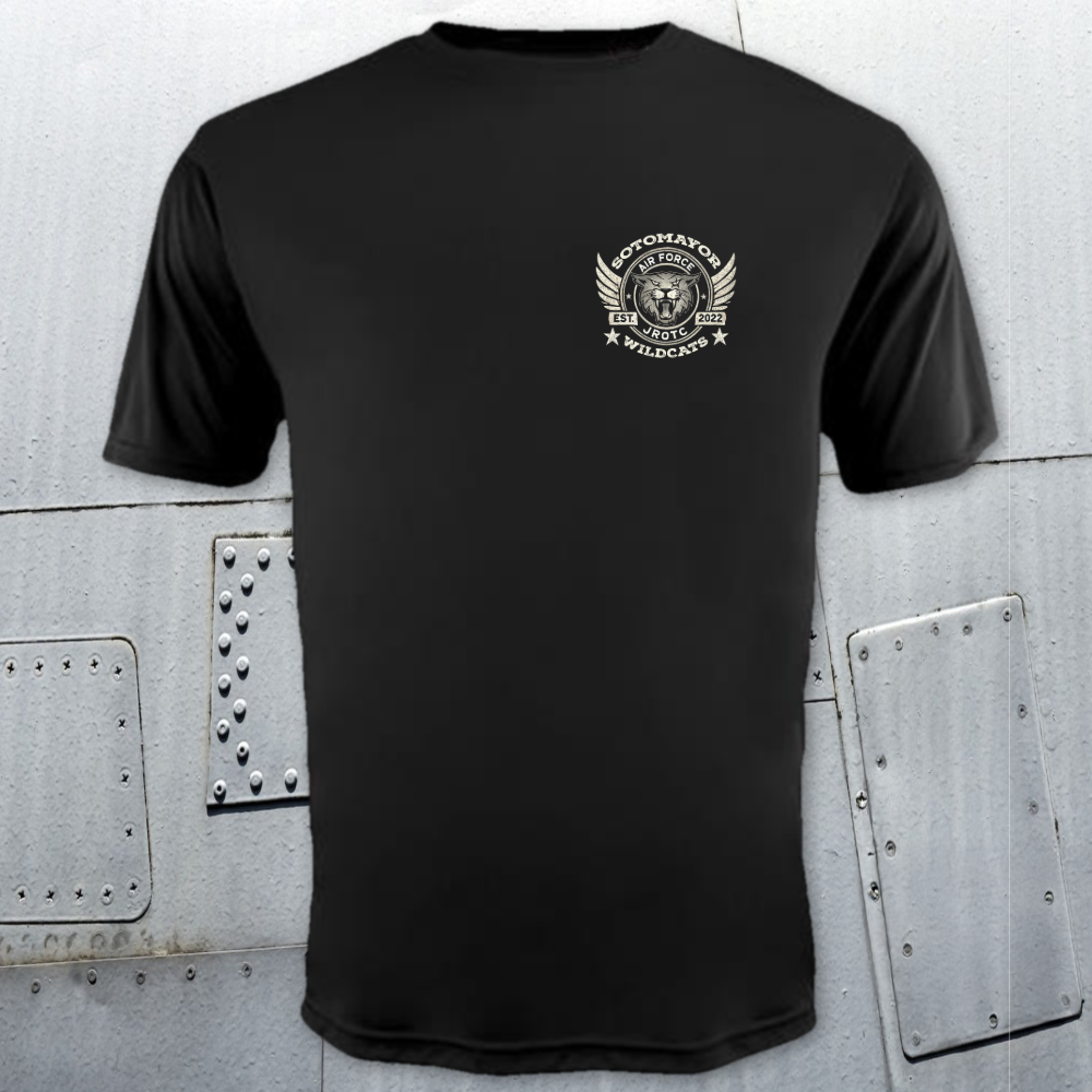 The Vintage Flyer is where history, heritage, and Wildcat pride come together. Featuring a distressed patriotic backdrop, retro winged mascot, and bold AFJROTC lettering, this design salutes the cadets of Sotomayor who wear the uniform with honor.