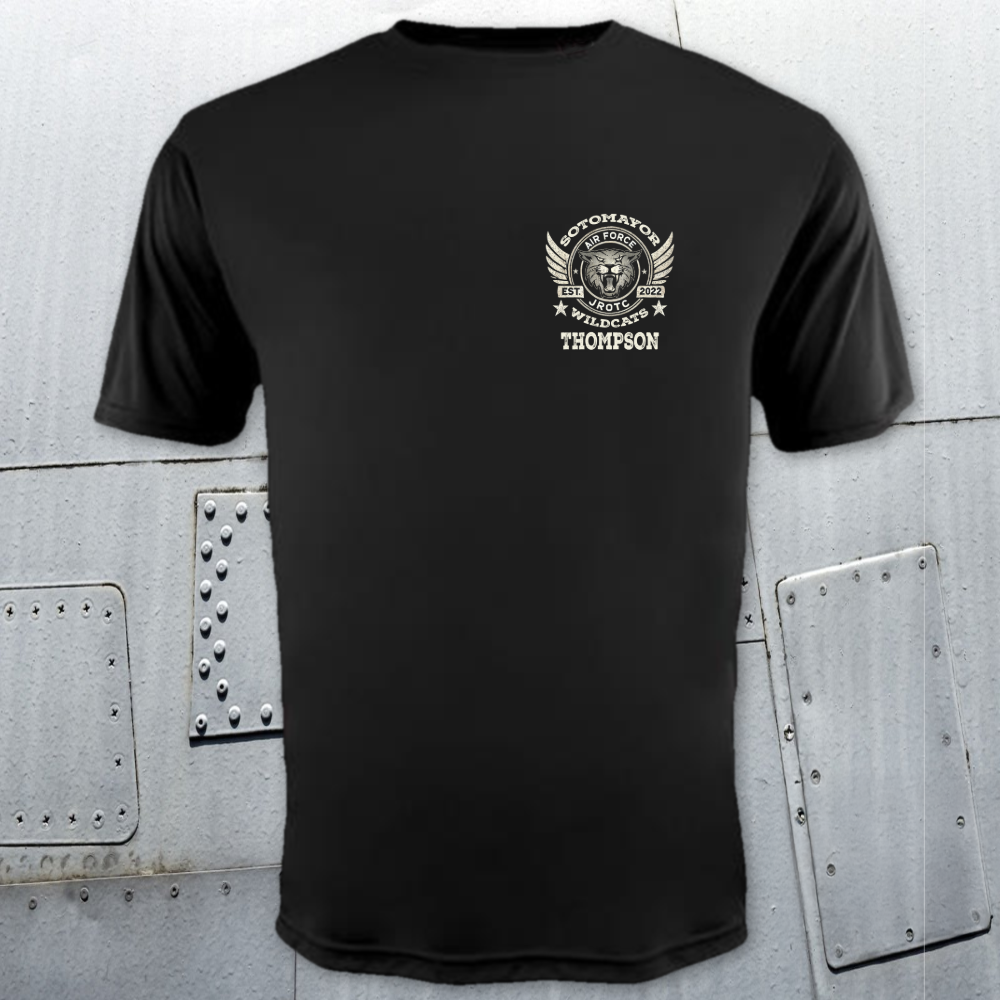 Now available on a performance dri-fit style tee, it combines that old-school squadron flair with modern comfort and durability. The lightweight, moisture-wicking fabric keeps you cool, dry, and ready for action — whether you’re drilling on the field, training in the gym, or repping your unit around campus.